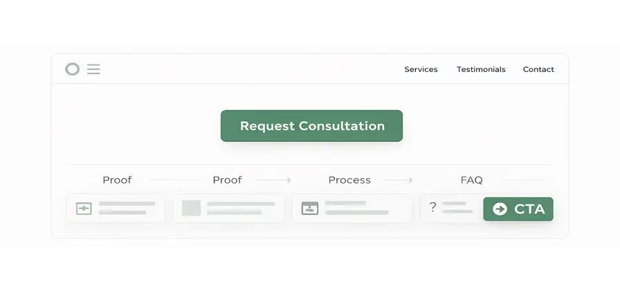 • Surfaced trust signals: credentials, testimonials, case outcomes